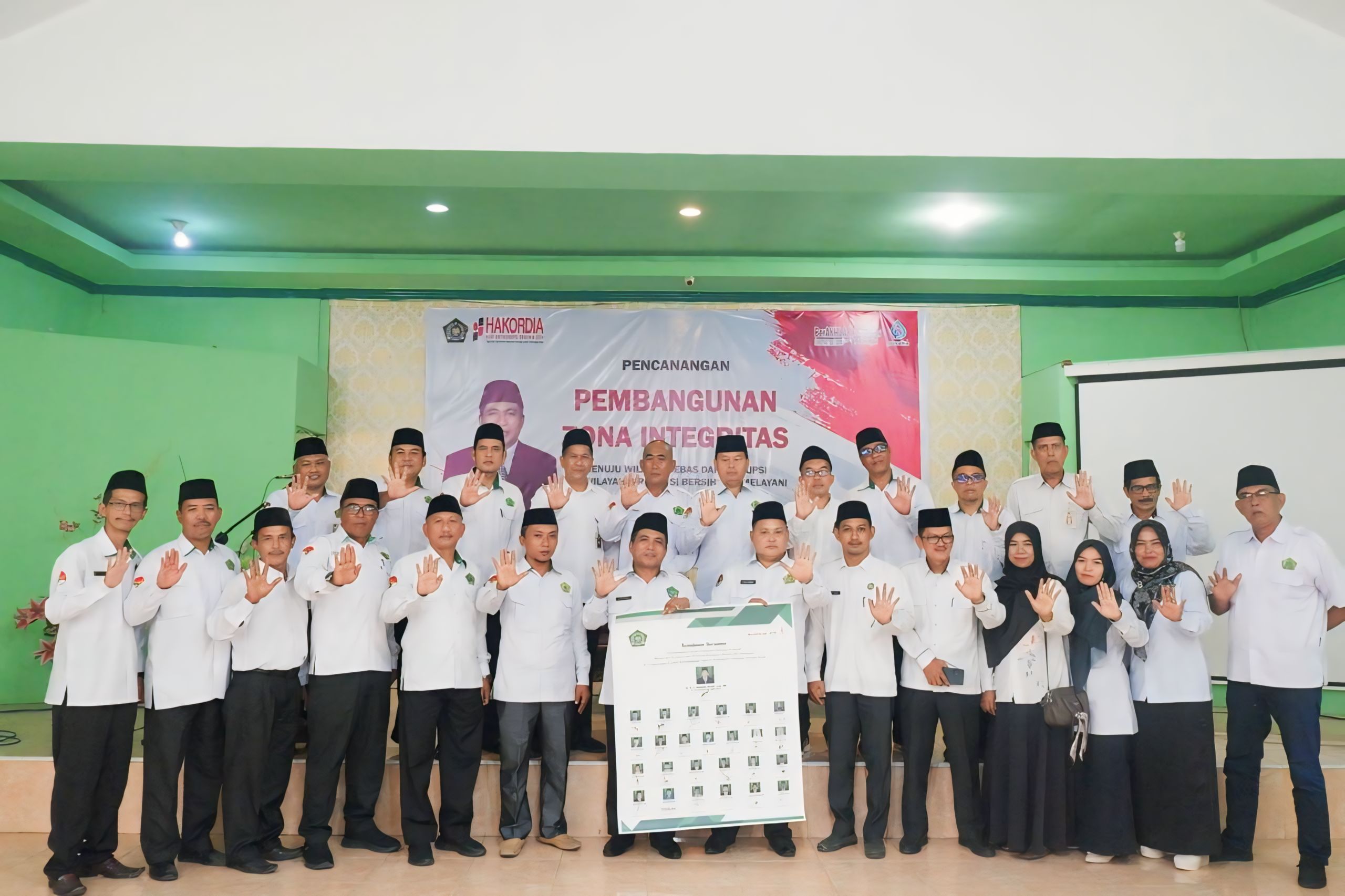 Acara diawali dengan laporan dari Ketua Tim H. Rusli, M.Pd.I yang juga menjabat Kasubbag TU. Kemudian langsung dibuka oleh Kepala Kantor Kemenag Tanjab Barat Dr. H. A. Rahman Sayuti. Kemudian pada akhirnya dilakukan penandatangan "Komitmen Bersama" oleh undangan yang hadir yang bertujuan untuk mewujudkan birokrasi yang bersih, akuntabel, berkinerja tinggi, efektif dan efisien, serta pelayanan publik yang berkualitas. Tentunya tujuan utamanya adalah untuk memperkuat kolaborasi dalam pencegahan korupsi di lingkungan Kemenag Tanjab Barat. (sb)