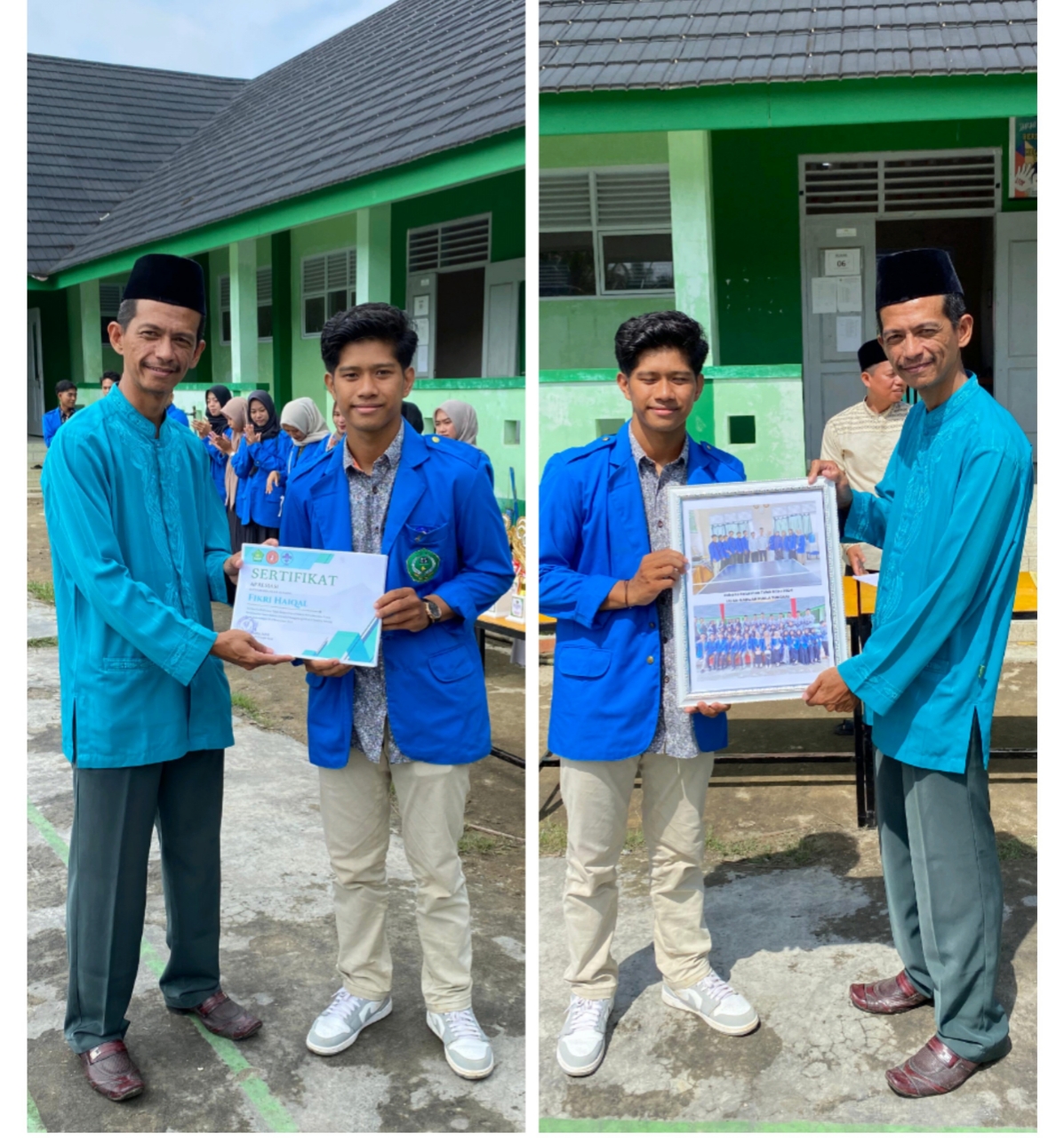 Kemudian diakhiri dengan pemberian kenang-kenangan dari perwakilan mahasiswa kepada pihak madrasah. Suasana berlansung haru, sedih dan gembira karena kebersamaan yang telah terjalin selama ini.