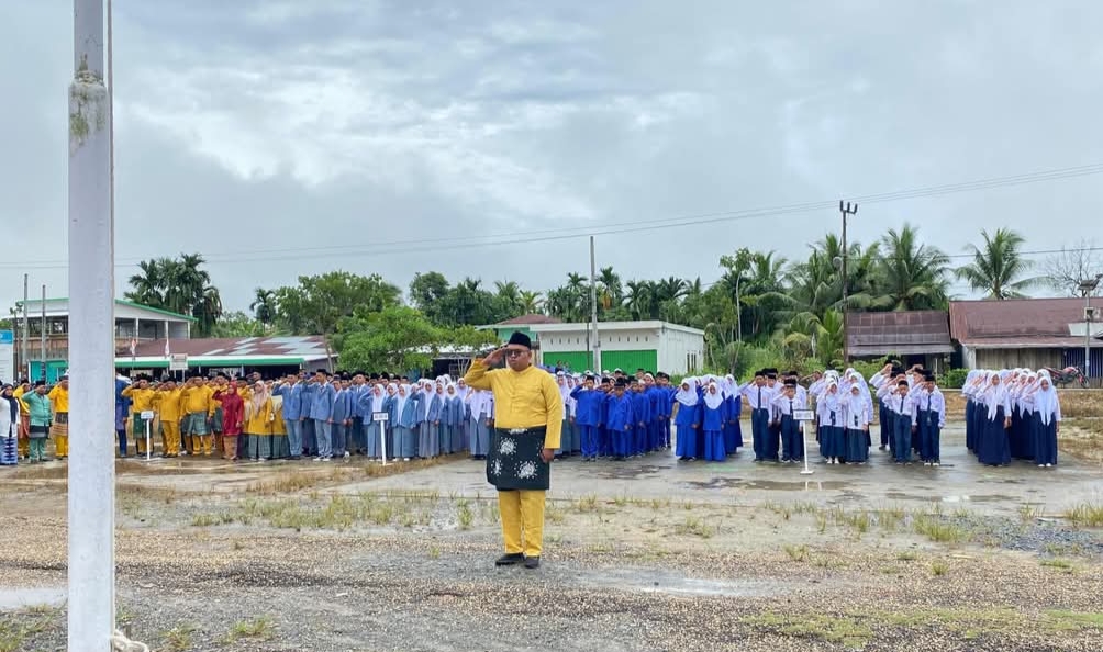 Tanjung Jabung Barat (MTsN 3 Tjb) – Guru dan siswa MTsN 3 Tanjab Barat mengikuti upacara Upacara HUT Provinsi Jambi ke-68 Tahun 2025 yang dilaksanakan di halaman Kantor Camat Pengabuan.