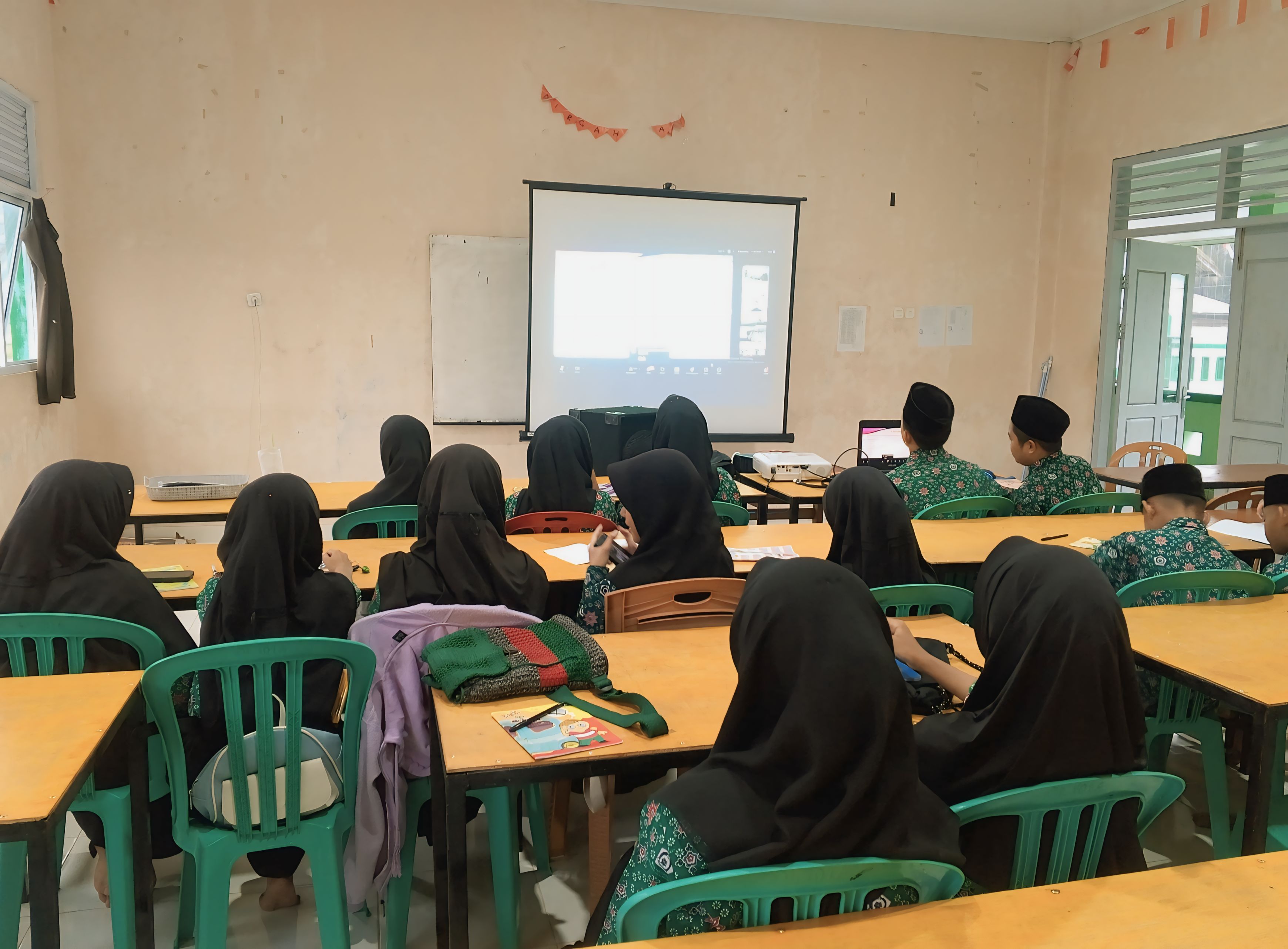 Tidak ketinggalan anggota OSIM juga mengikuti zoom meeting. Meskipun pagi ini hujan lebat yang dimulai malam hari, namun tidak menyurutkan para siswa mengikuti kegiatan ini. Mereka sangat bersemangat dan antusias mengikutinya dari awal sampai akhir kegiatan. Zoom meeting diikuti bersama di ruang kelas MTsN 3 Tanjab Barat.