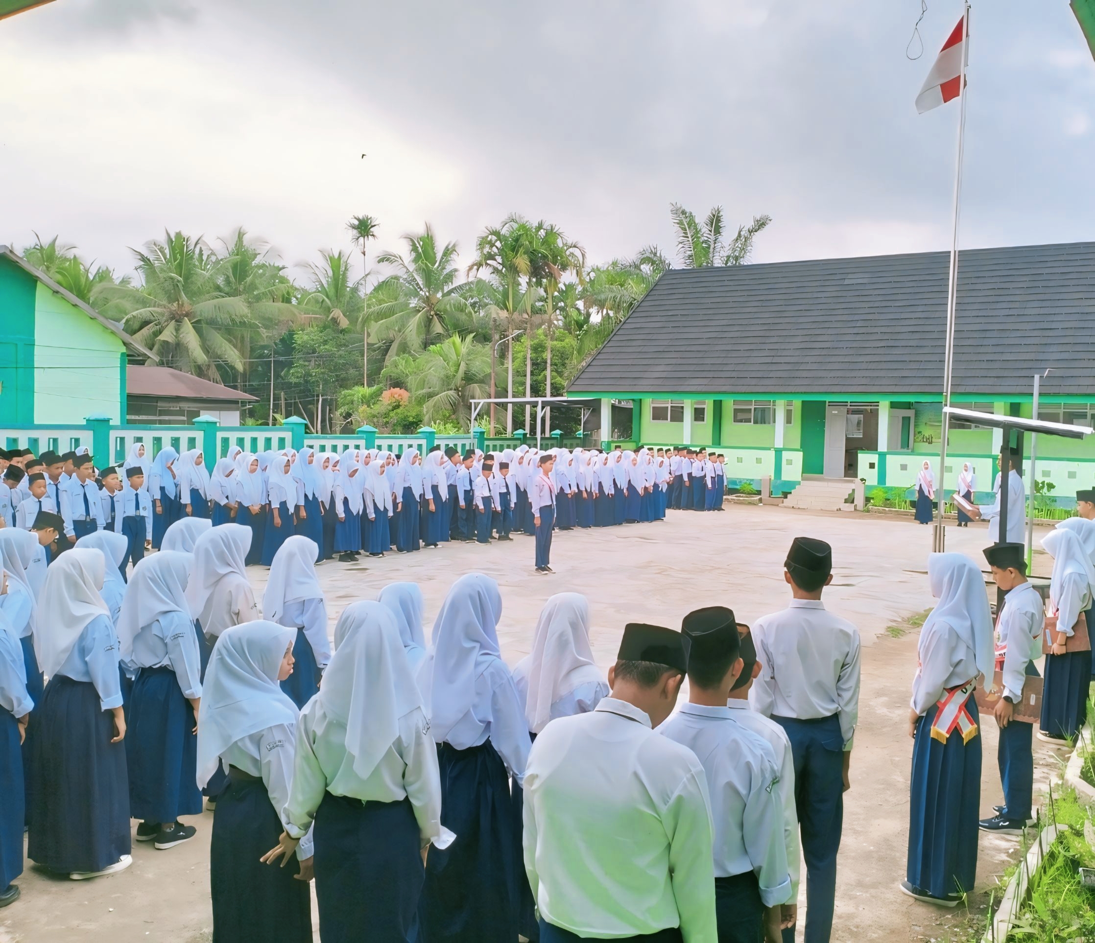 Teluk Nilau (MTsN 3 Tjb) – Kepala MTsN 3 Tanjab Barat, Khairul Fadhli, M.Pd.I bertindak sebagai pembina upacara pada minggu pertama bulan Februari, Senin (03/02/2025) yang berlangsung di halaman madrasah. Upacara diikuti oleh seluruh siswa kelas VII sampai IX dan majelis guru. Bertindak sebagai petugas upacara siswa/i kelas IX.