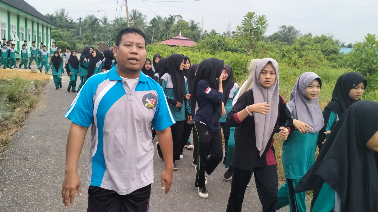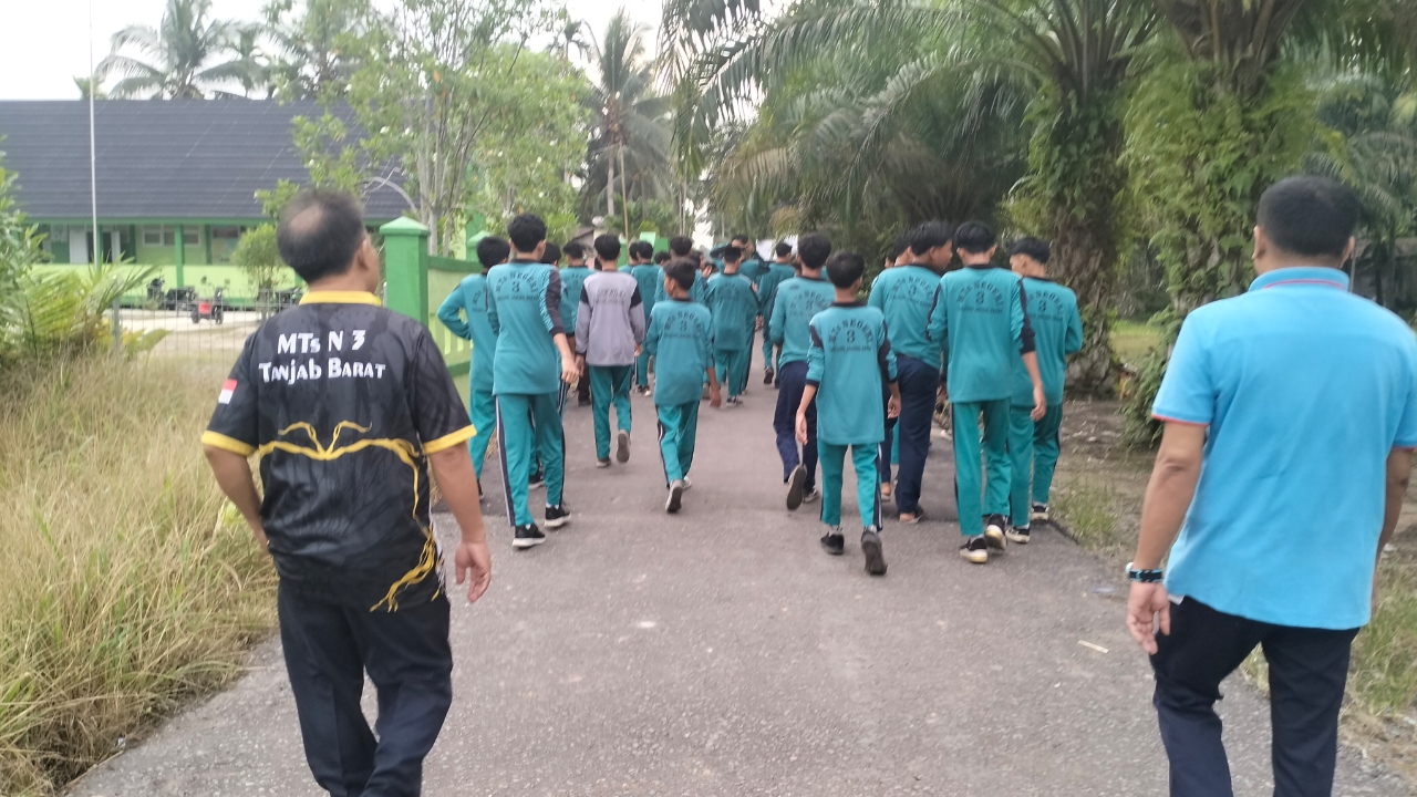 Teluk Nilau (MTsN 3 Tjb) – Program pembiasaan yang dilaksanakan MTsN 3 Tanjung Jabung Barat salah satunya adalah jalan santai sehat setiap hari Rabu yang dilaksanakan secara bergantian pembiasaaan senam sehat.