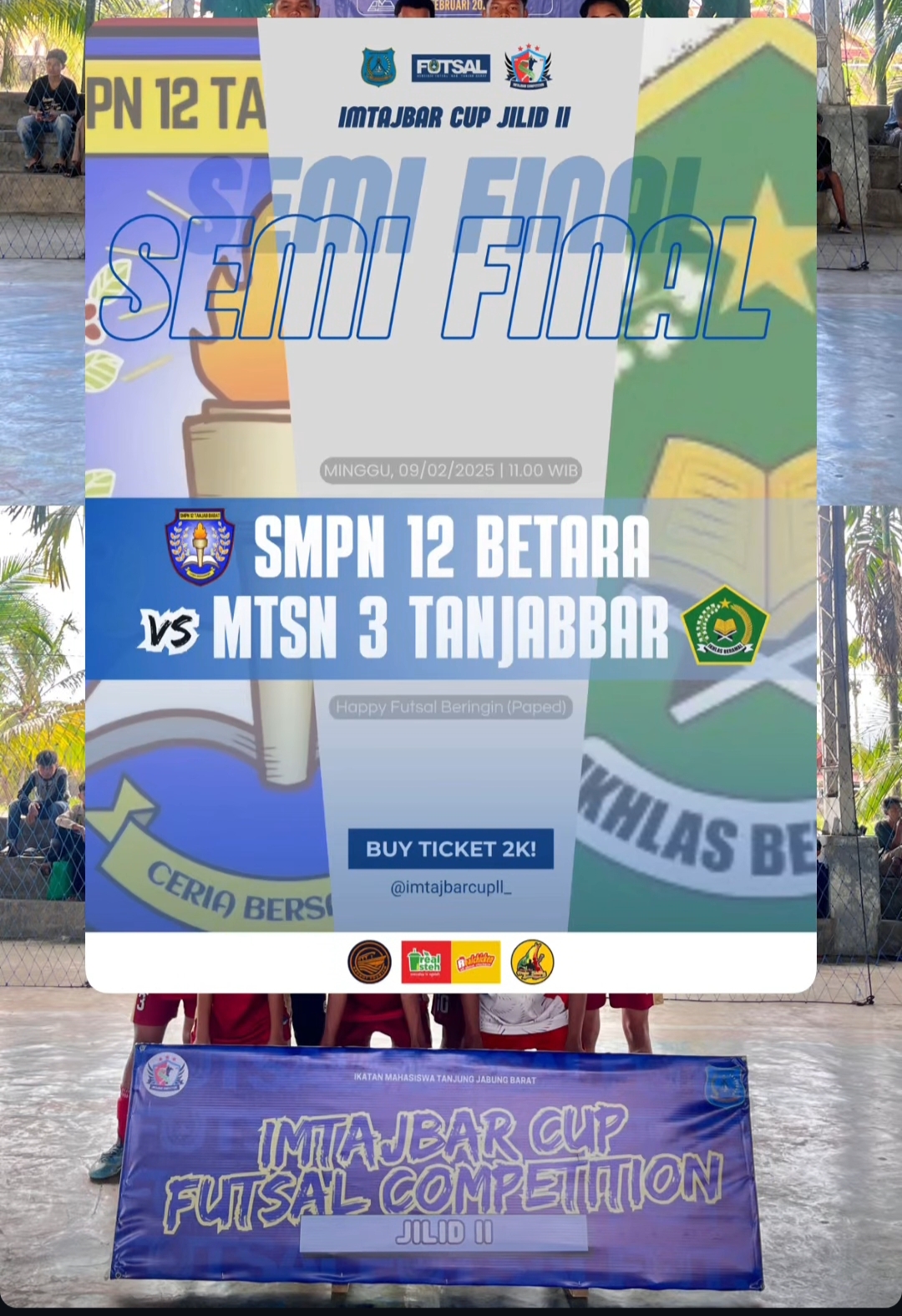 Selanjutnya pertandingan pada 2 besar atau final nanti pada hari yang sama tanggal 09 Februari 2025 MTsN 3 TJB akan menantang SMPN 1 A TJB. Sejauh ini SMPN 1 A TJB merupakan tim kuat dan tersubur dalam perolehan gol yang mengalahkan SMPN 3 C TJB dengan skor 4-1 juga telah bertanding. (sb)