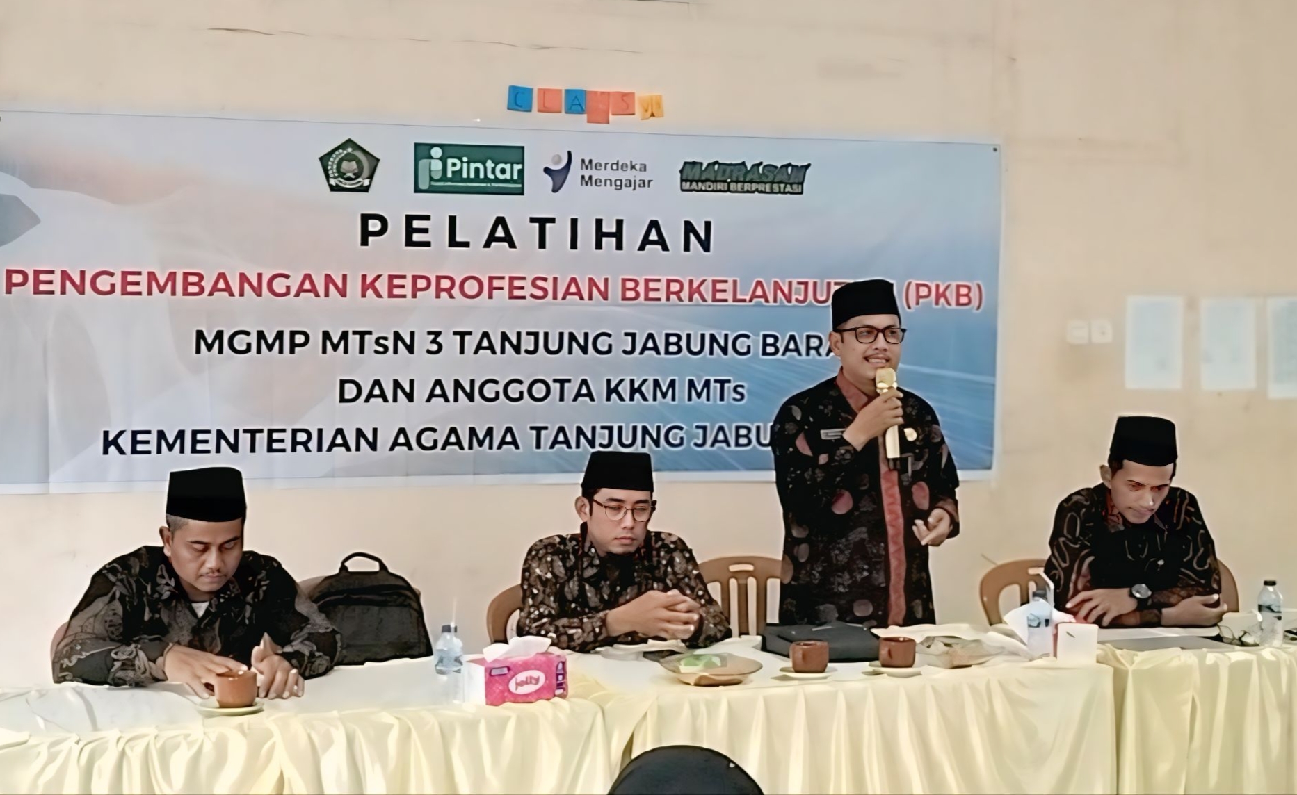 Teluk Nilau (MTsN 3 Tjb) – Musyawarah Guru Mata Pelajaran (MGMP) MTsN 3 Tanjung Jabung Barat Beserta Anggota KKM mengadakan Pelatihan Pengembangan Keprofesian Berkelanjutan (PKB) pada hari Rabu 26 Februari 2025 bertempat di gedung MTsN 3 Tanjab Barat yang dimulai pukul 08.30 WIB.